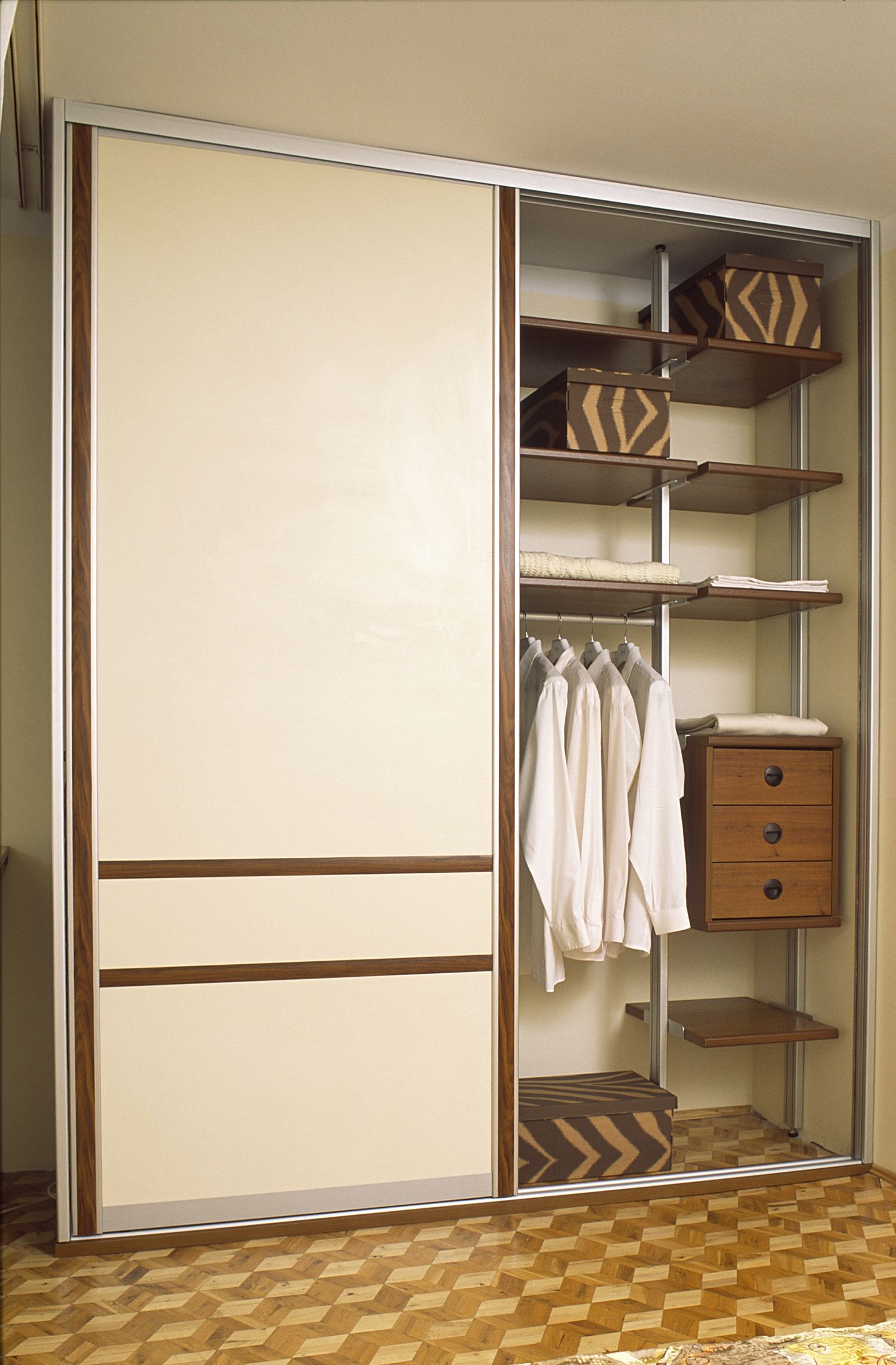 Dalším naším hlavním směrem jsou vestavné skříně všech možných tvarů a rozměrů. Jsme je schopni vybavit různými druhy drátěných programů, které vyřeší praktičnost, funkčnost a uspořádáníprostoru. Skříně jsou doměřeny a přizpůsobeny přesně rozměrům vašich prostorů.